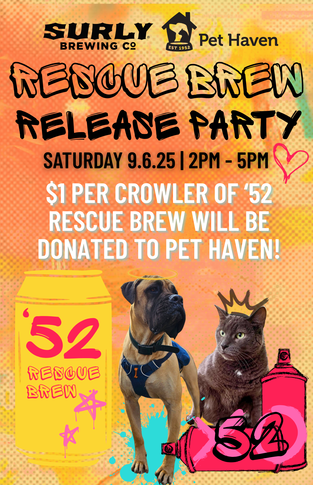 We'll be unveiling our '52 Rescue Brew with Surly Brewing Company at our Rescue Brew Release party in September!