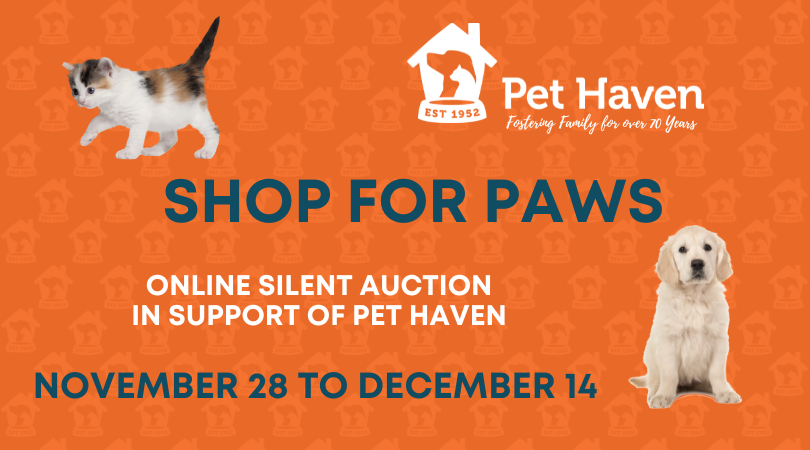 November 28 @ 8:00 am - December 14 @ 5:00 pm Shop for Paws Shop for Paws is almost here! Pet Haven can’t wait to kick off one of the season’s most anticipated shopping events! The annual Shop for Paws is your chance to discover meaningful holiday gifts and unique treasures for friends, family, or yourself. Whether you’re searching for handcrafted goods, specialty items, or exclusive experiences, there’s something … Continued
